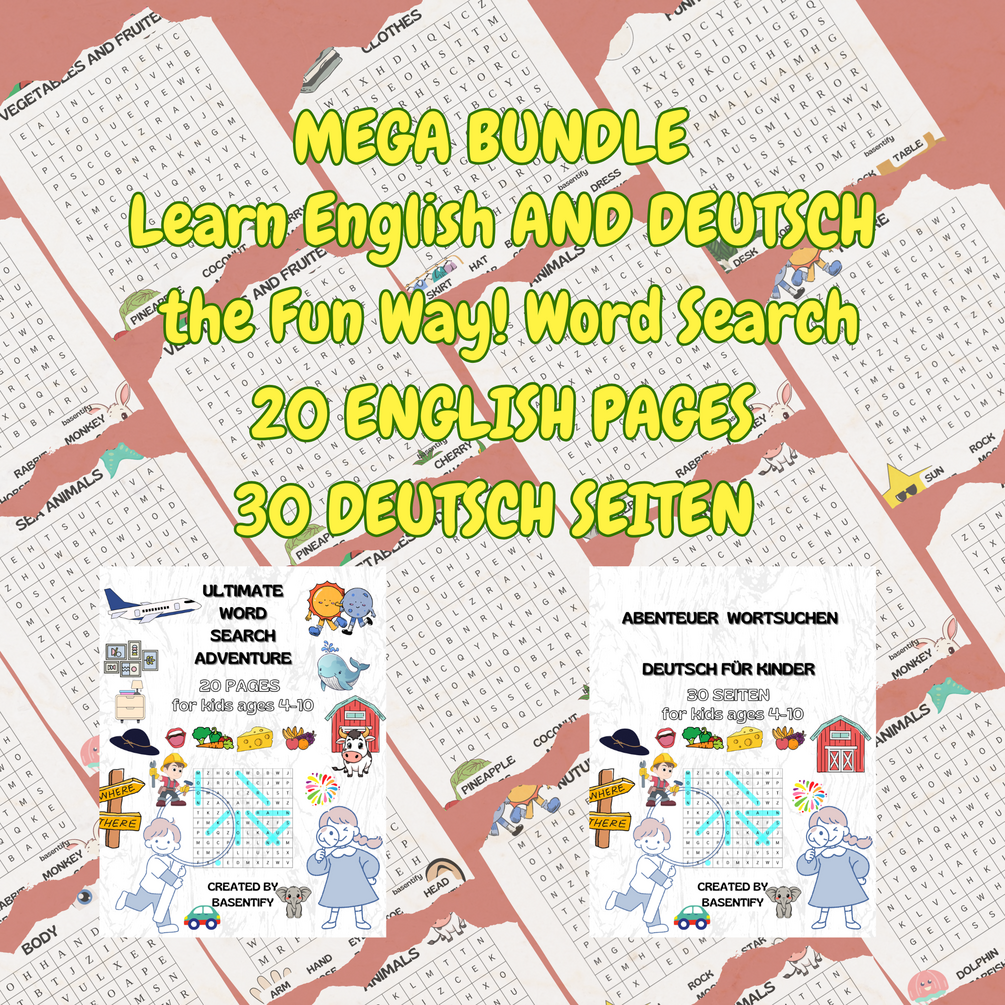 Kids Word Search Mega Bundle – English & German | 50 Printable Pages for Fun Vocabulary Learning